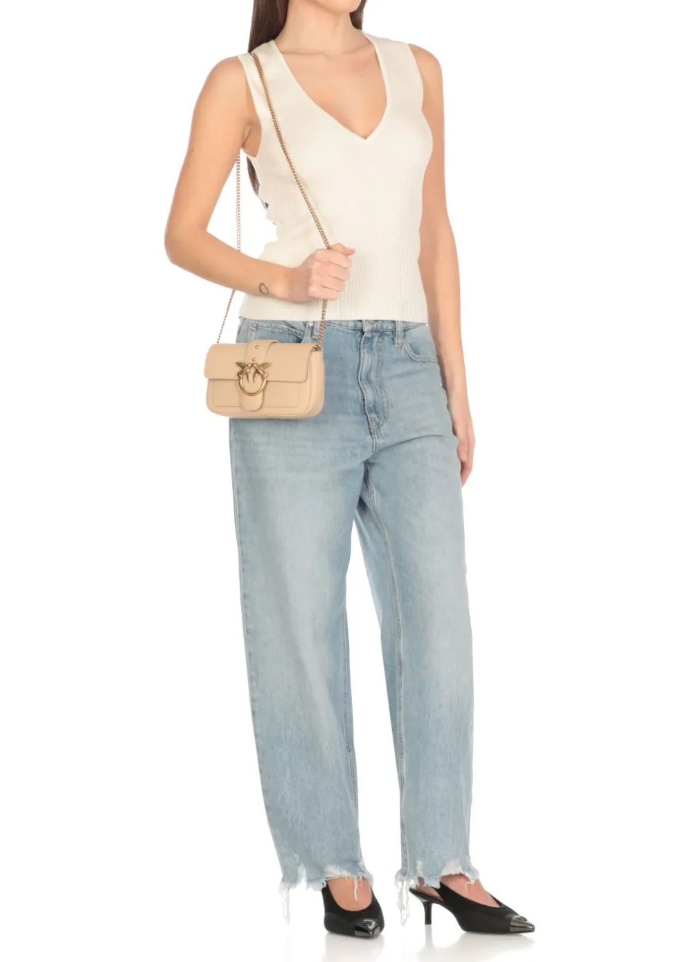 – Borsa a spalla Pinko beige in pelle da donna